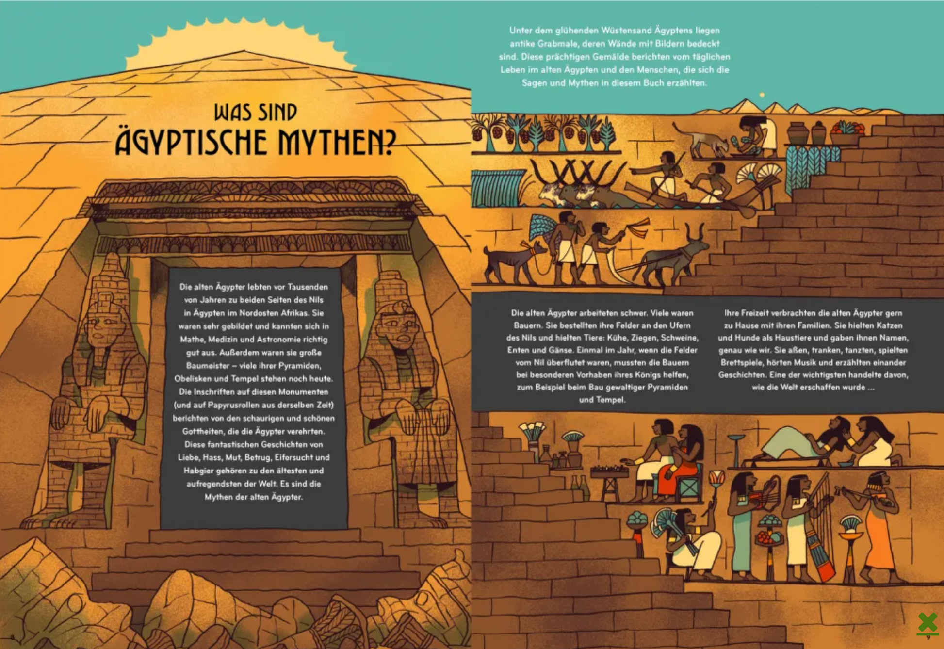 Mit diesem im witzigen Comicstil illustrierten Sachbuch reisen wir direkt in die Welt des Alten Ägyptens! Es versammelt die bekanntesten ägyptischen Mythen, Sagen und Legenden und gibt einen Überblick über tapfere Held:innen, erhabene Gottheiten, mächtige Pharaonen und fürchterliche Ungeheuer der ägyptischen Sagenwelt. Das Mythologie-Buch enthält Geschichten voller Liebe, Verlust, Gier, Neid und Tapferkeit und hat auch allgemeine Informationen zu den ägyptischen Mythen parat.