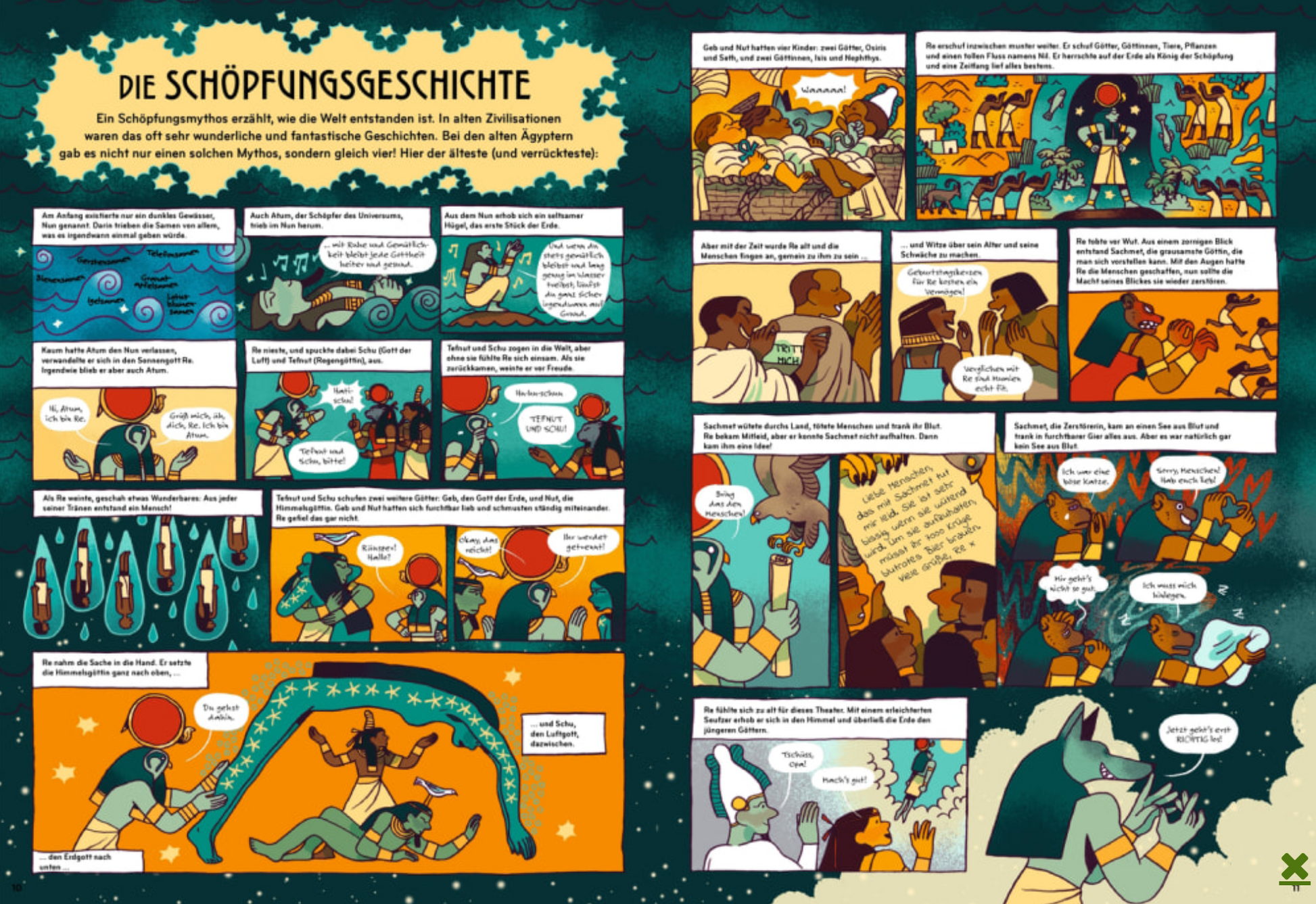 Sagen der ägyptischen Mythologie für Kinder neu erzählt im witzigen Comic-Stil