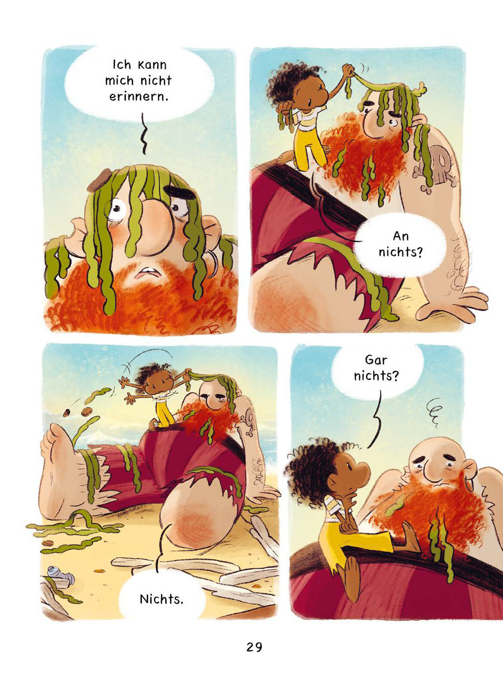 »Bist du… ein Pirat?« Der Mann, den Bonny laut schnarchend am Strand entdeckt, erinnert sich an nichts, nicht einmal an seinen Namen. Mit seinem struppigen Bart und dem einen Bein, soviel ist Bonny klar, muss er einfach ein Pirat sein. Und als solcher braucht er einen Namen und eine Crew! Ehe Bonnys Pirat sich's versieht, heißt er Zack und die beiden stechen gemeinsam in See.